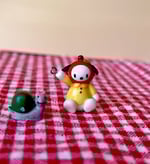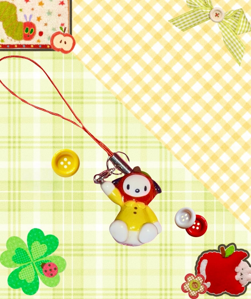 This adorable handmade Pochacco charm is ready for an adventure! Featuring one of my favorite childhood characters wearing the cutest little apple hat and a yellow sailor collared shirt, this wearable sculpture makes the sweetest accessory for any pair of keys, phone, bag, and anything else you can loop it onto!